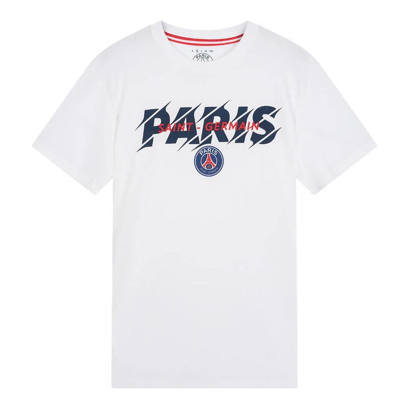 Het witte Paris Saint-Germain heren t-shirt. Stijlvol, veelzijdig en perfect voor supporters. Laat zien dat je fan bent en straal in dit must-have shirt!